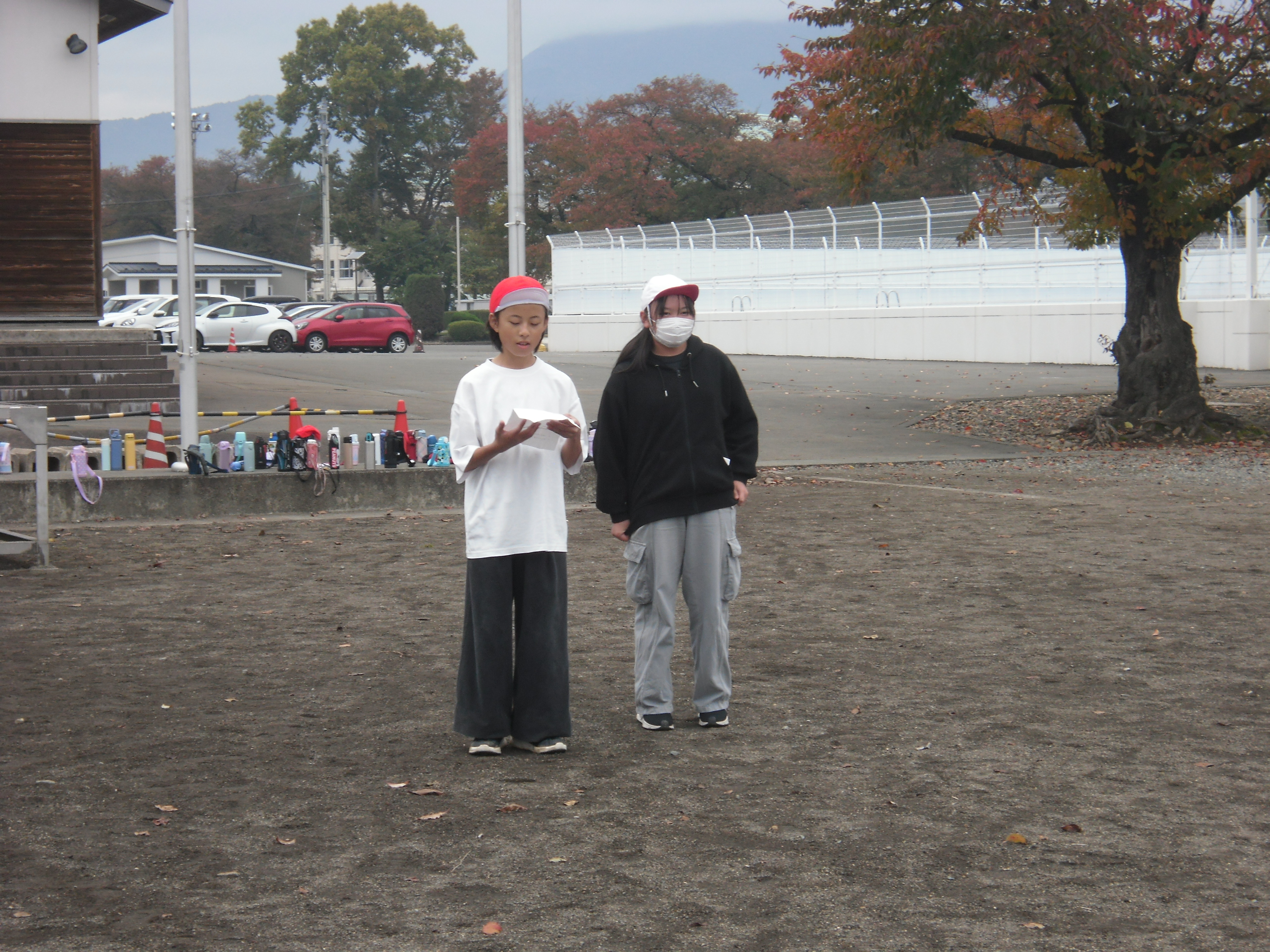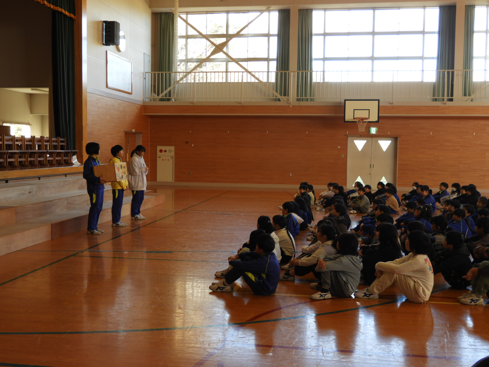 児童会執行部からは、全校児童に向けて、21日(金)開催の音楽学習発表会に向けた取り組みやボールの使い方についてお話をしました。