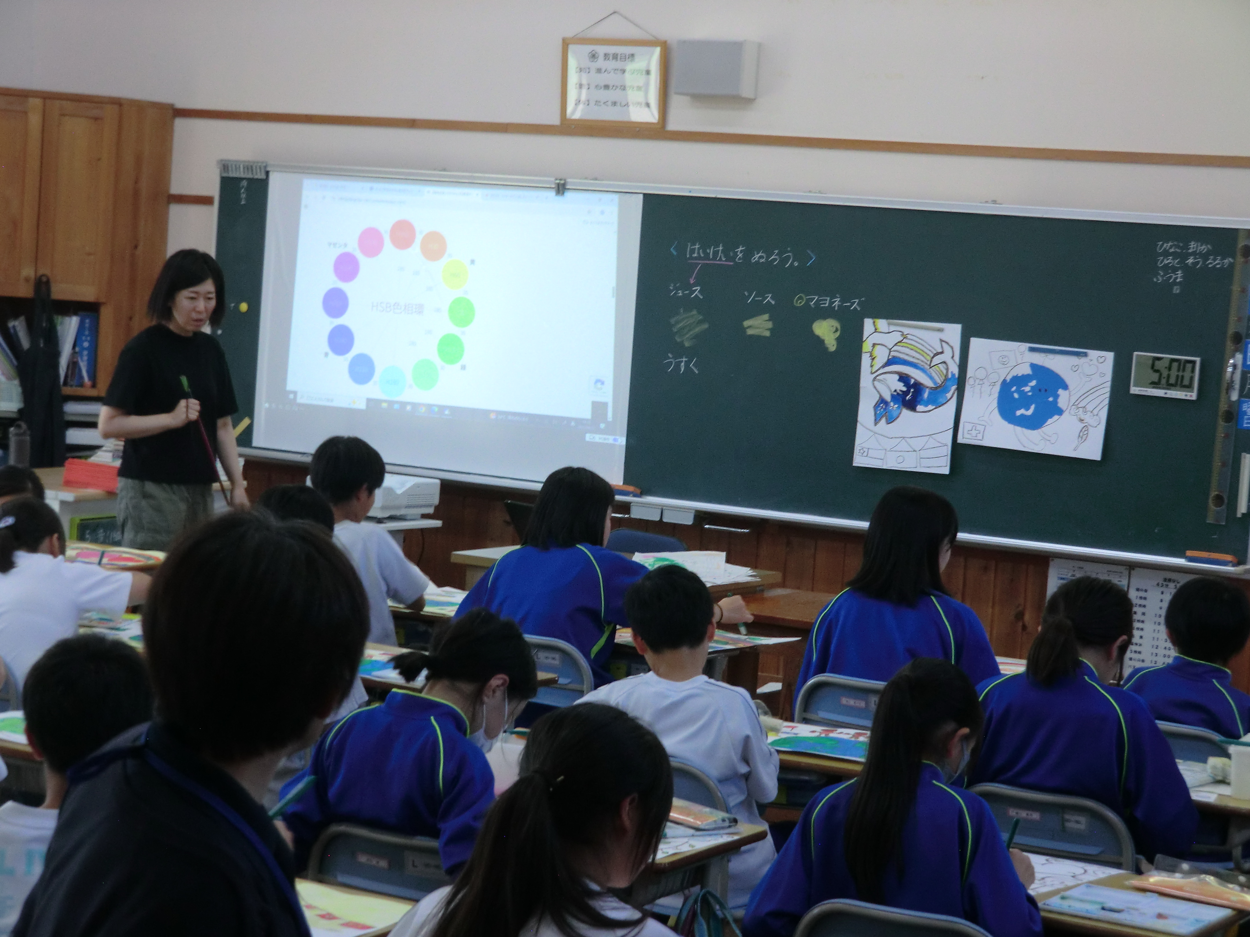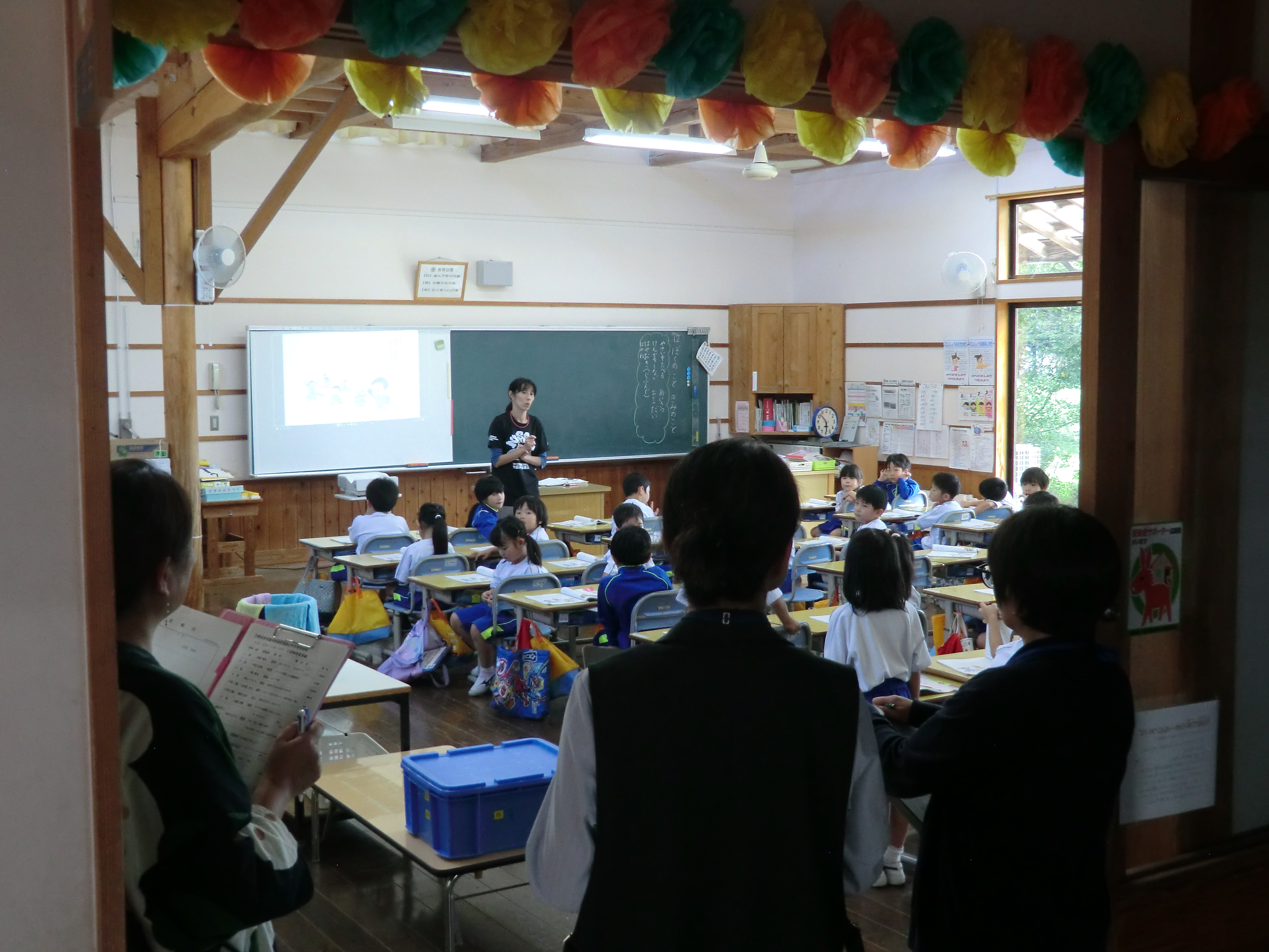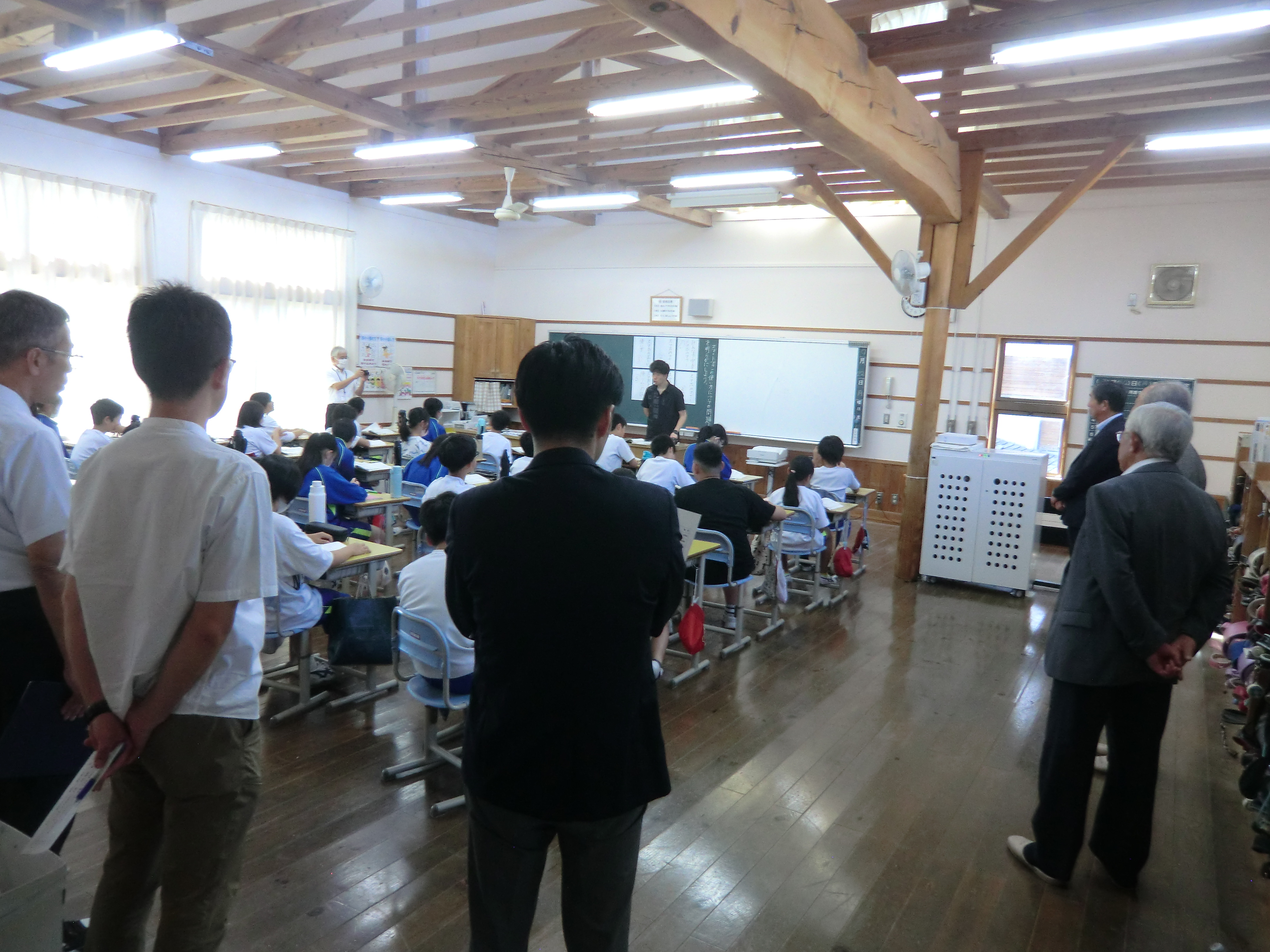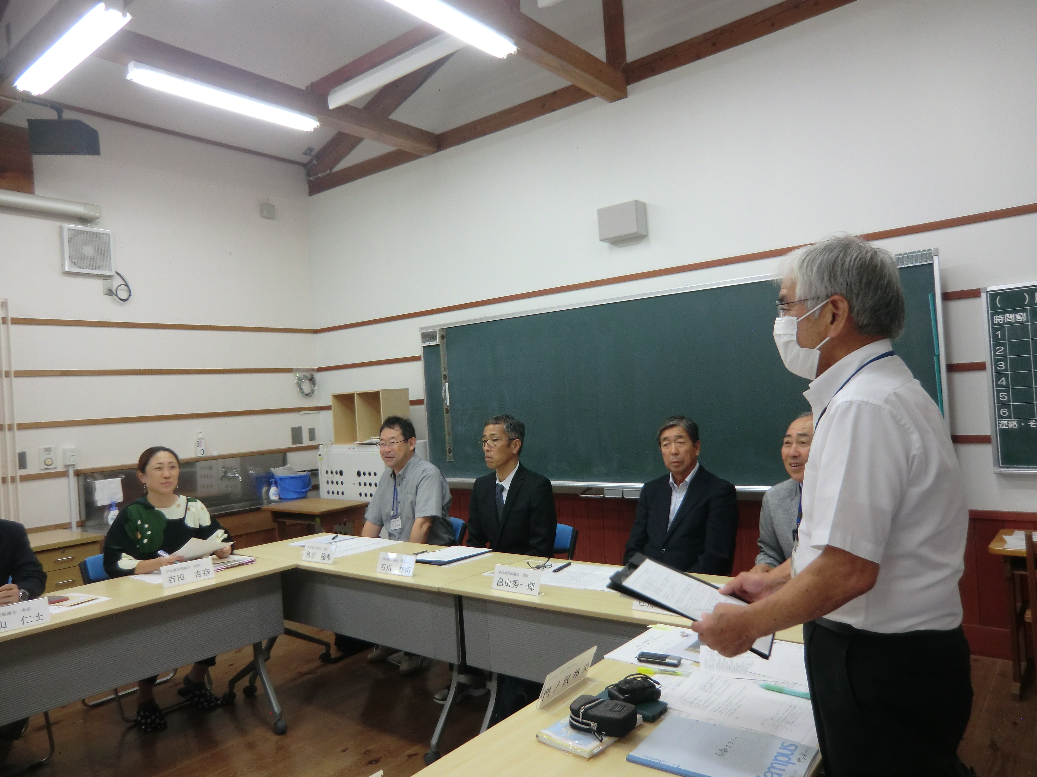まず、来校いただいた委員の皆様に、5校時の授業参観をしていただきました。委員の皆様からは、「子どもたちが生き生きと学習している」「授業中の先生と子どもたちのコミュニケーションが円滑で、楽しく学習している様子が伝わってきた」等の感想を頂戴いたしました。