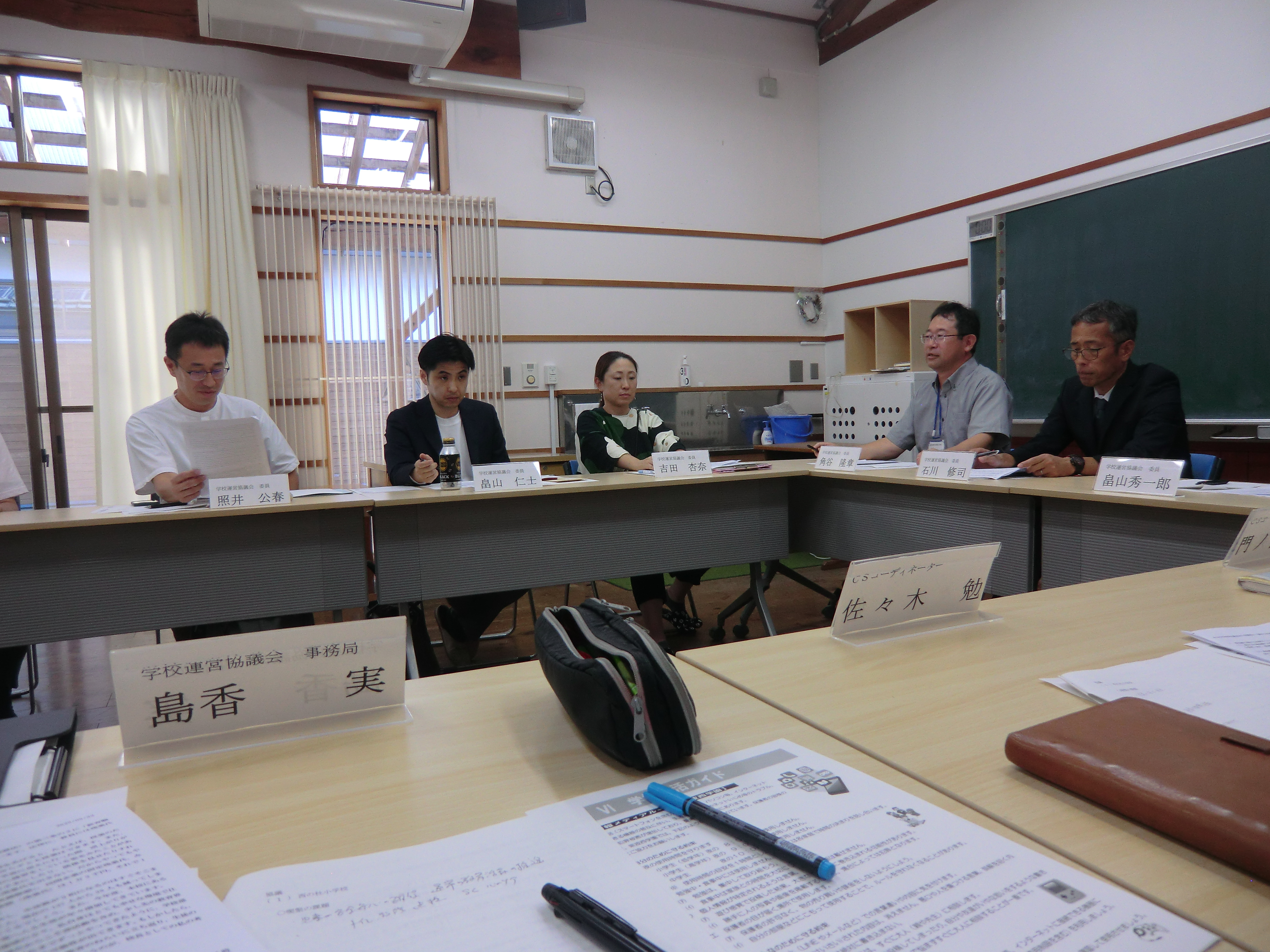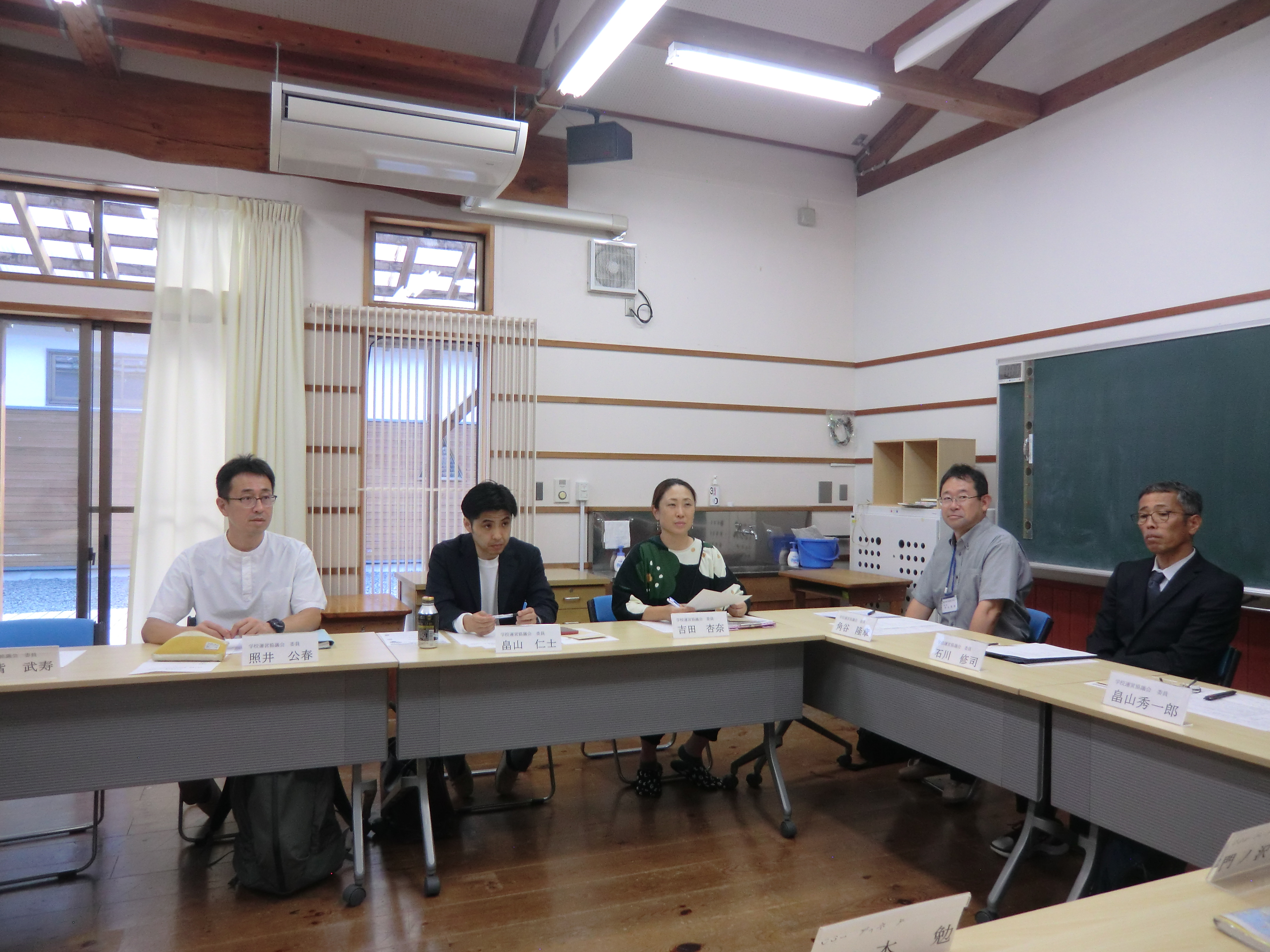 その後、生活科ルームにて、第2回学校運営協議会を開催し、5月末に実施した第1回学校運営協議会後の学校運営について確認しました。また、熟議(協議)の中では、中学校部活動の地域移行(地域展開)の方向性や紫波第三中学校の取組の様子について意見が交わされました。最後に、地域が一体となって、紫波西学園の児童生徒の健全育成に係る取組を行っていくことを確認しました。