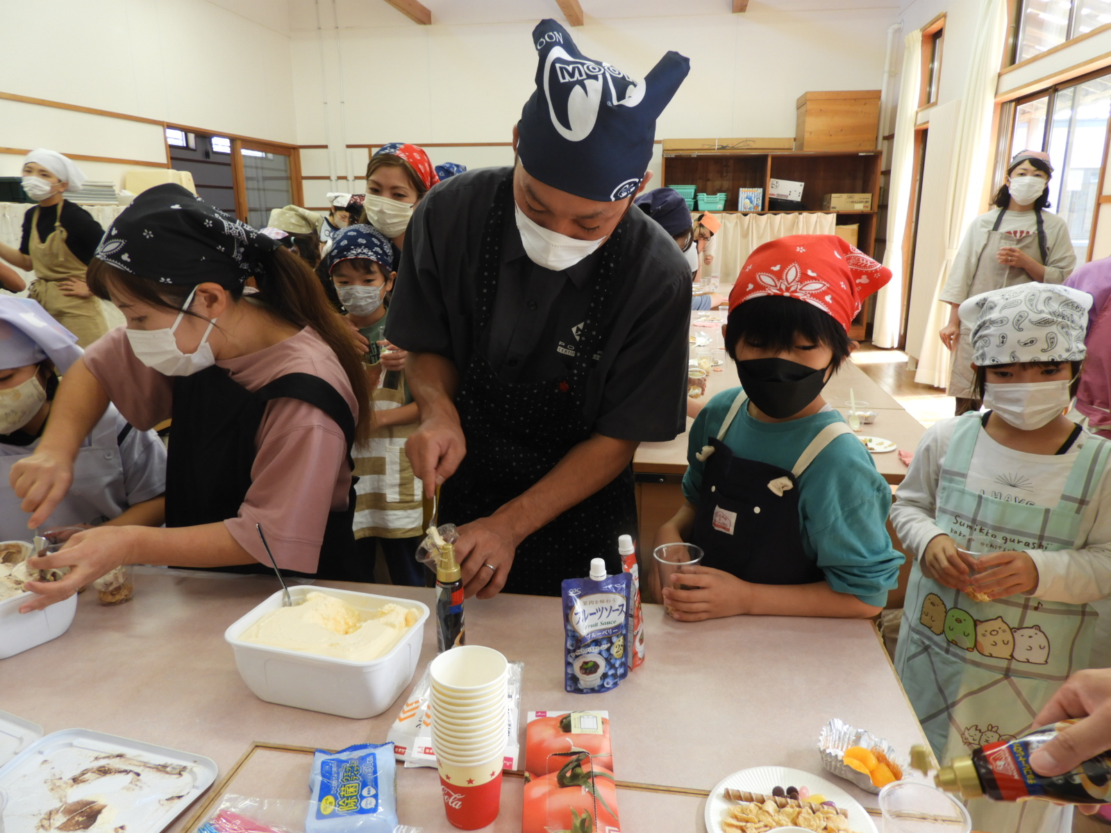 前半は、家庭科室でミニパフェ作りを親子で協力して行いました。親子で相談しながら、カップに材料を盛り付けし、かわいらしくデコレーションをしていました。仲良く試食した後、3年教室で給食試食会を実施しました。普段子どもたちがおいしくいただいている給食を親子で一緒に食べることを通して、改めて給食のよさを実感することができました。
