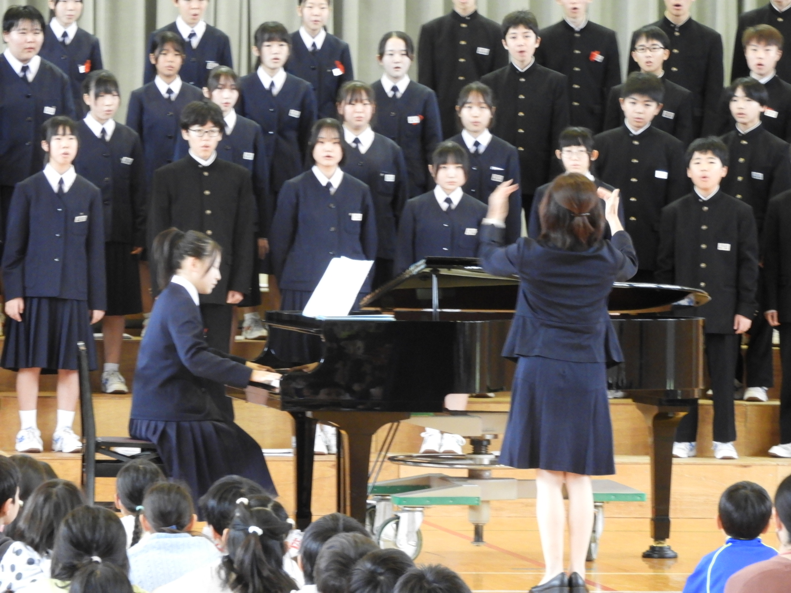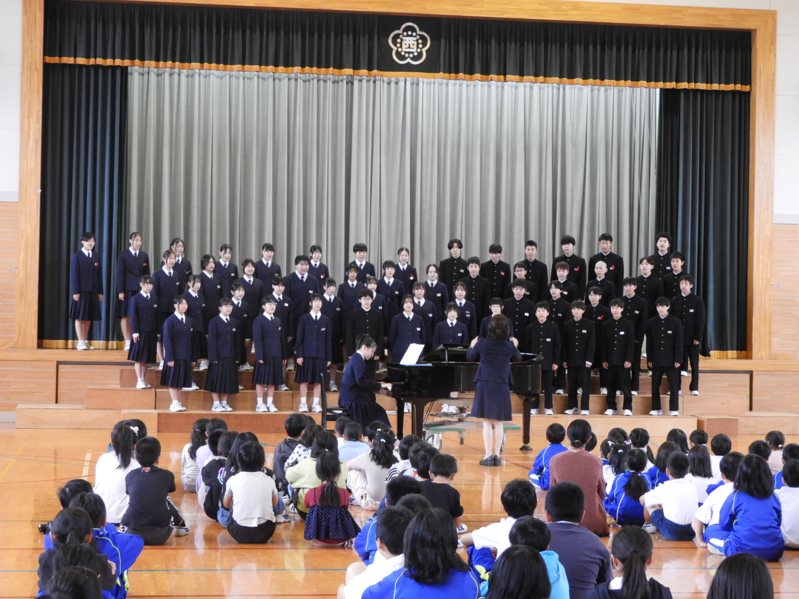 西の杜小学校と紫波第三中学校の合唱交流は、施設隣接型小中一貫教育校「紫波西学園」の取組の一環として続いています。4年生の子どもたちには、中学生の素晴らしい発表をモデルに、自分たちの発表もさらに磨き上げていってほしいです。