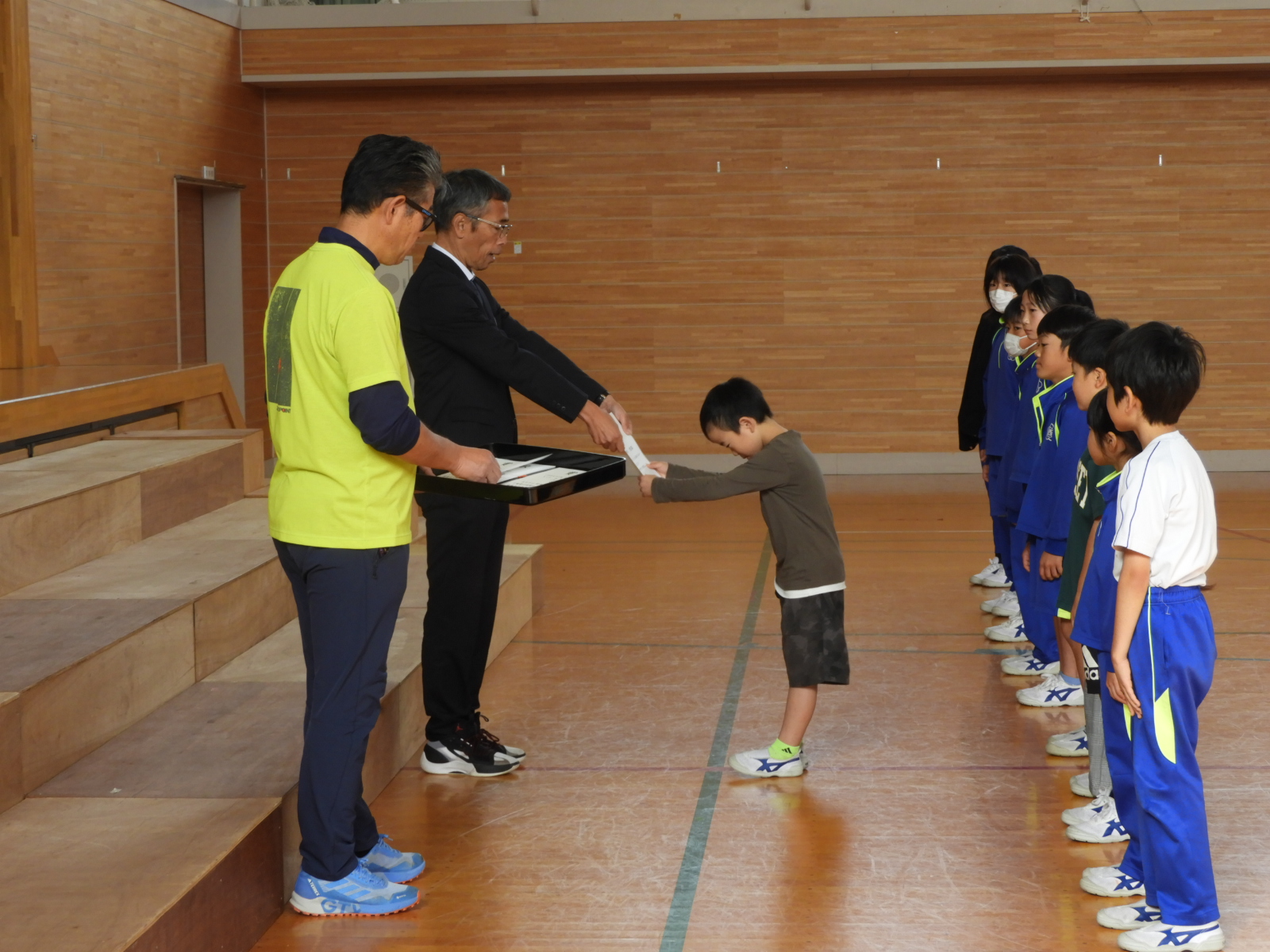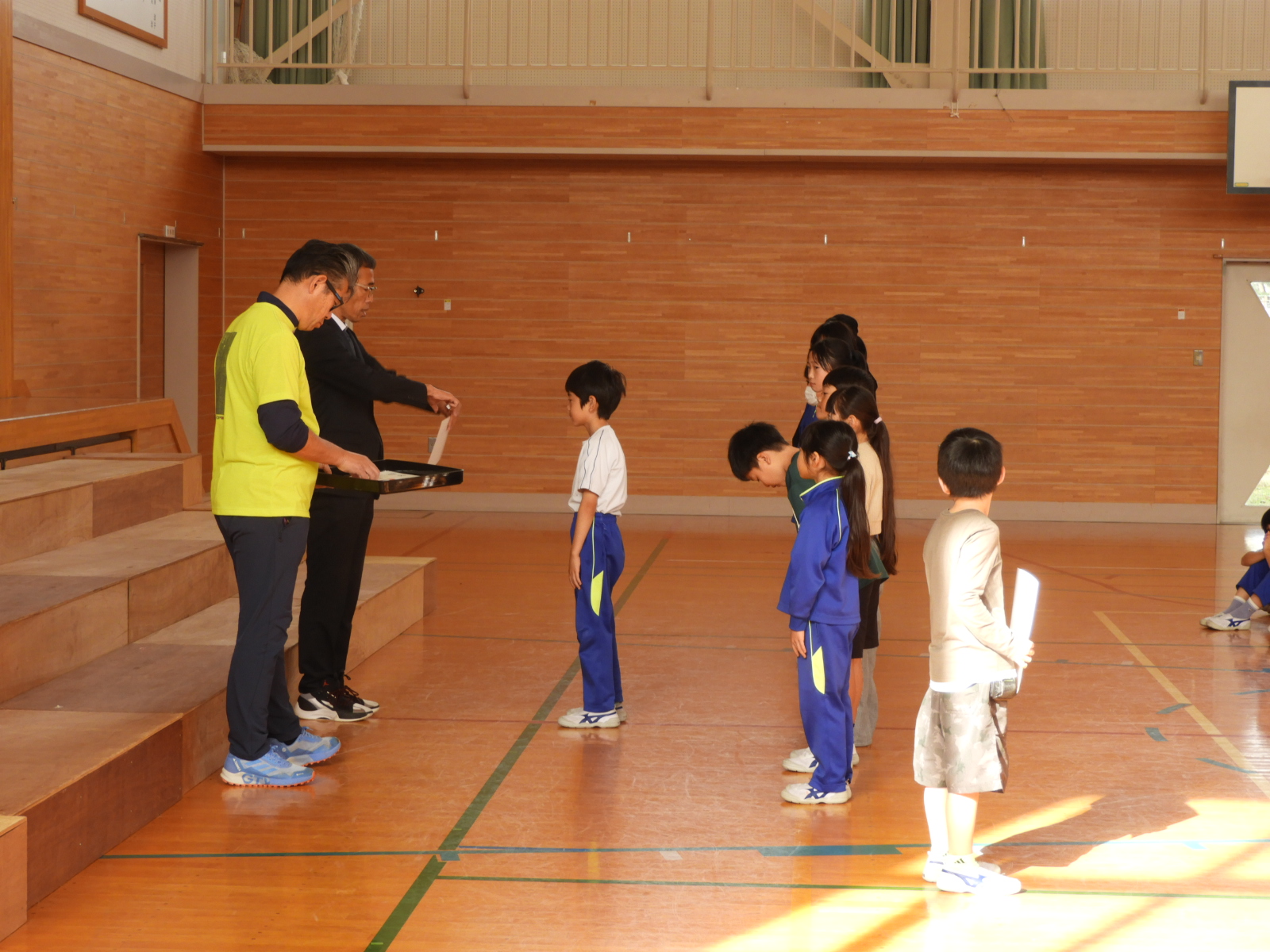 読書感想文コンコール・紫波郡小学校陸上記録会・校内マラソン大会で入賞した児童に対し、校長先生から賞状を授与していただきました。どの子も、ちょっぴり恥ずかしそうにしながらも、賞状を掲げる姿はとても誇らし気でした。