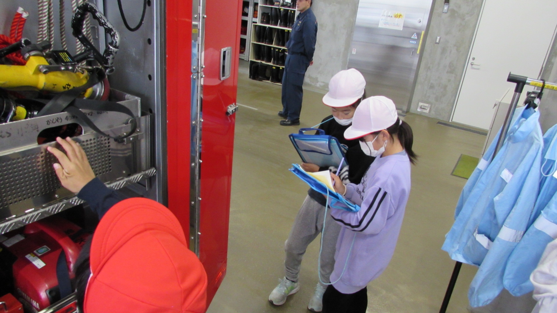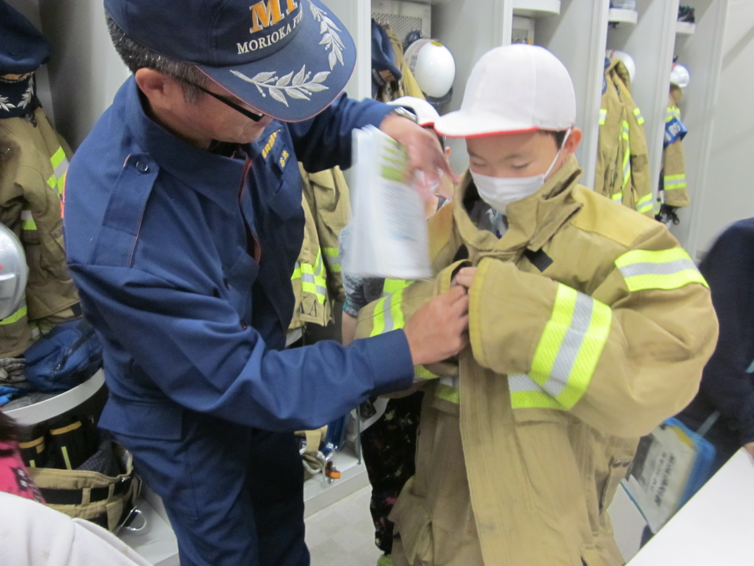 紫波消防署の方からは、実際の消防車を使って、その仕組みを教えていただいたり、防火服を試着させていただいたりと、教科書だけでは学ぶことができない貴重な体験となりました。