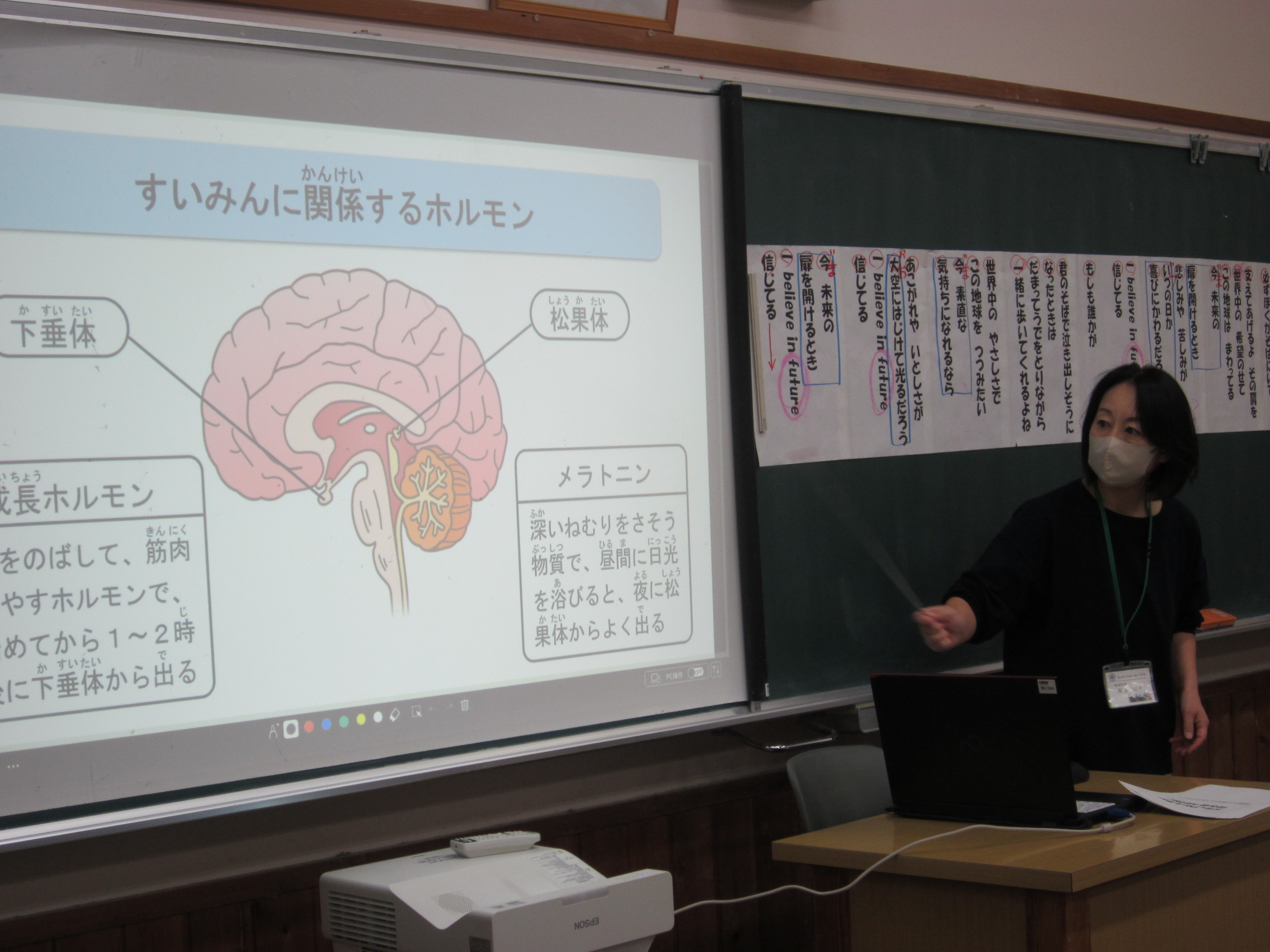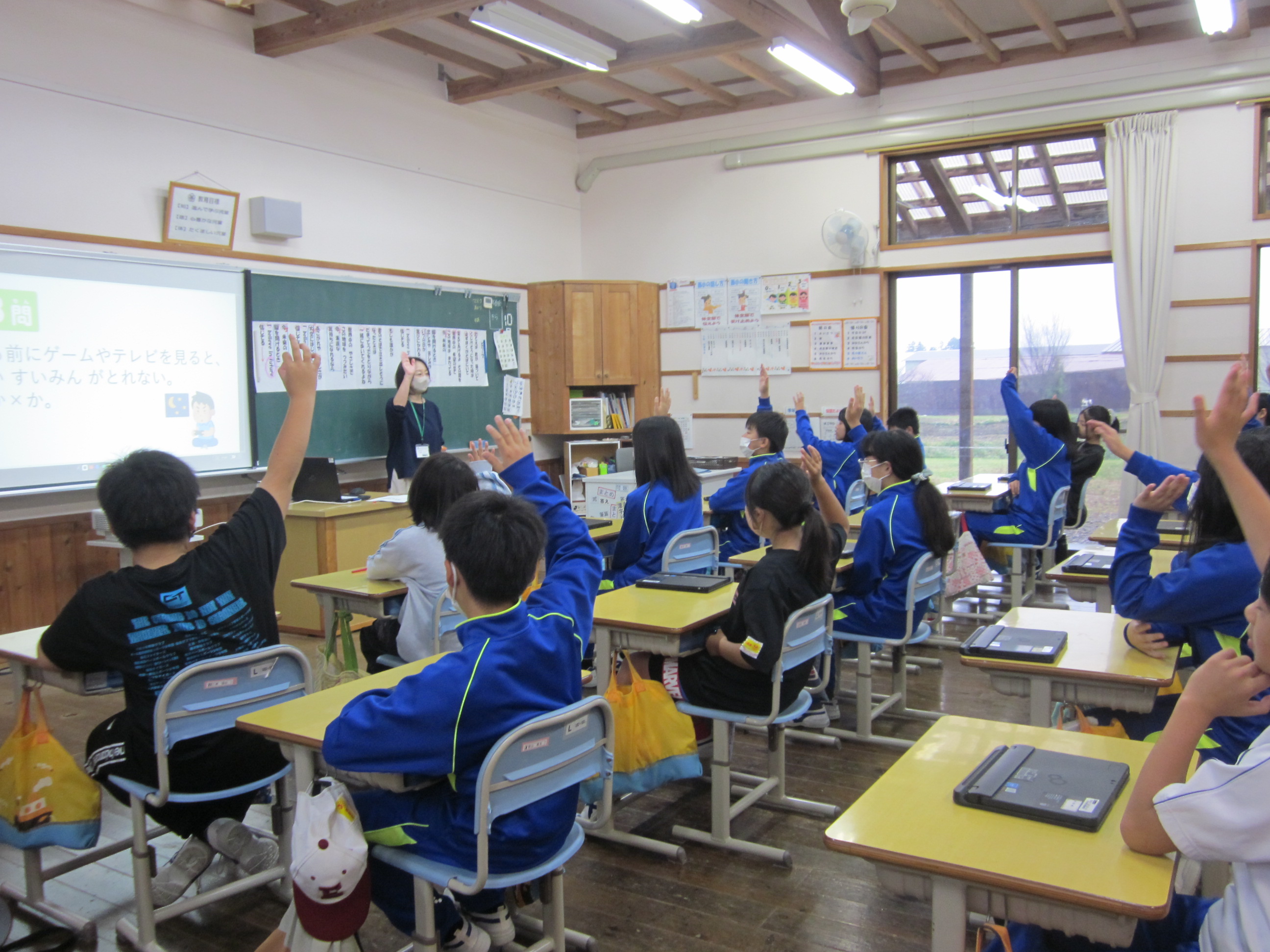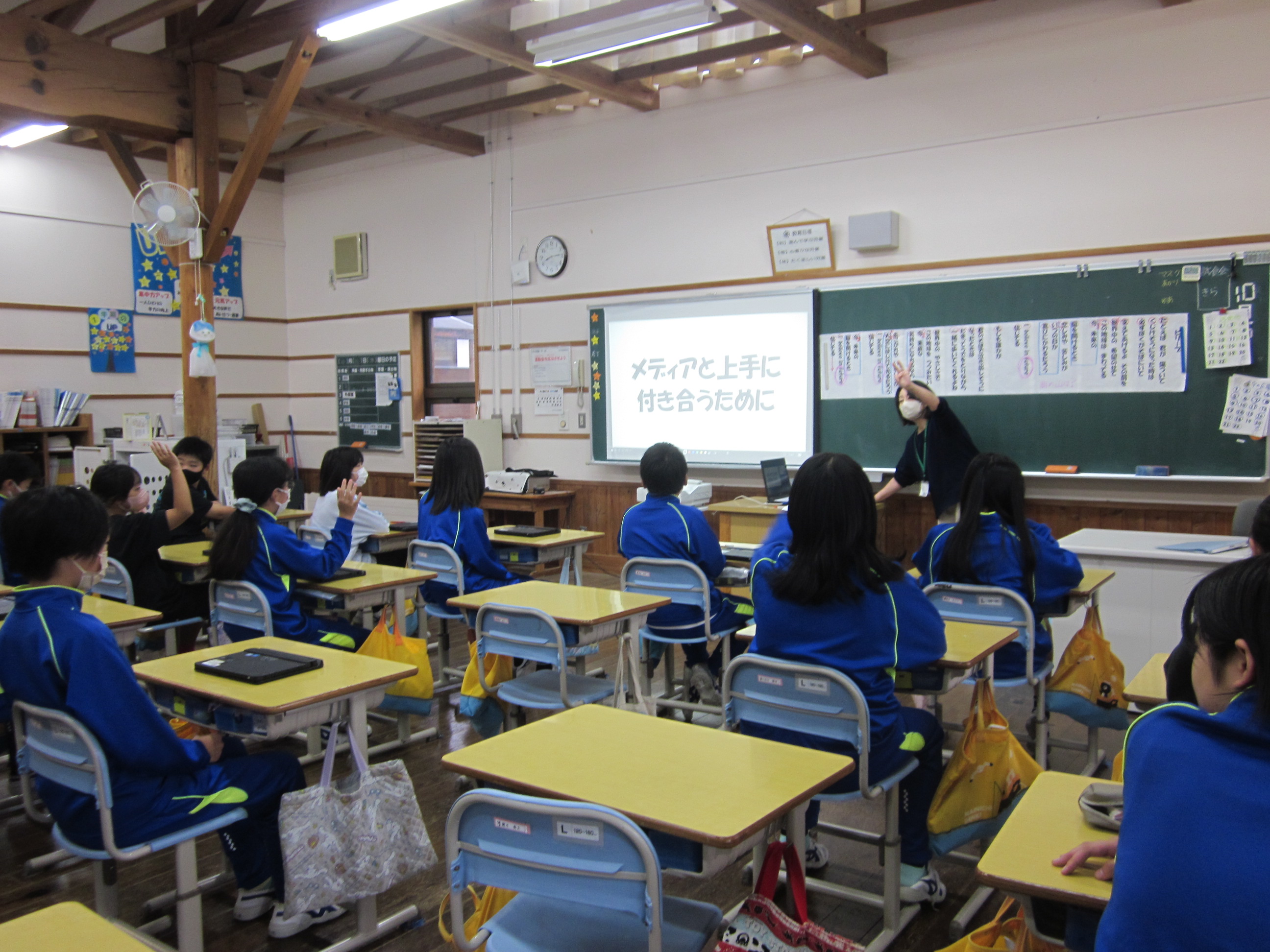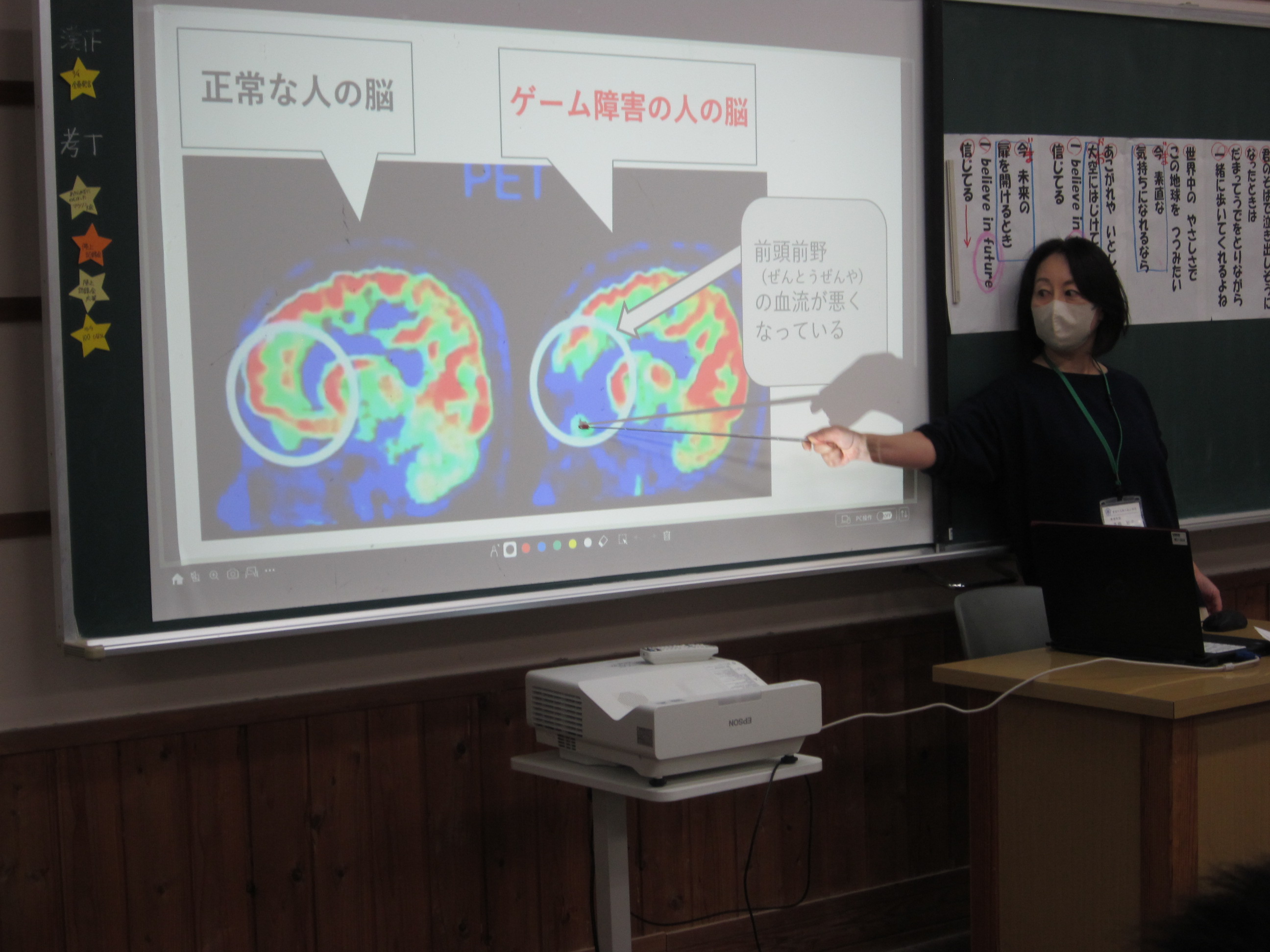 本校養護教諭の指導のもと、メディアの使い過ぎによる健康被害を防ぐため、適切に利活用することが大切であることについて話し合いました。