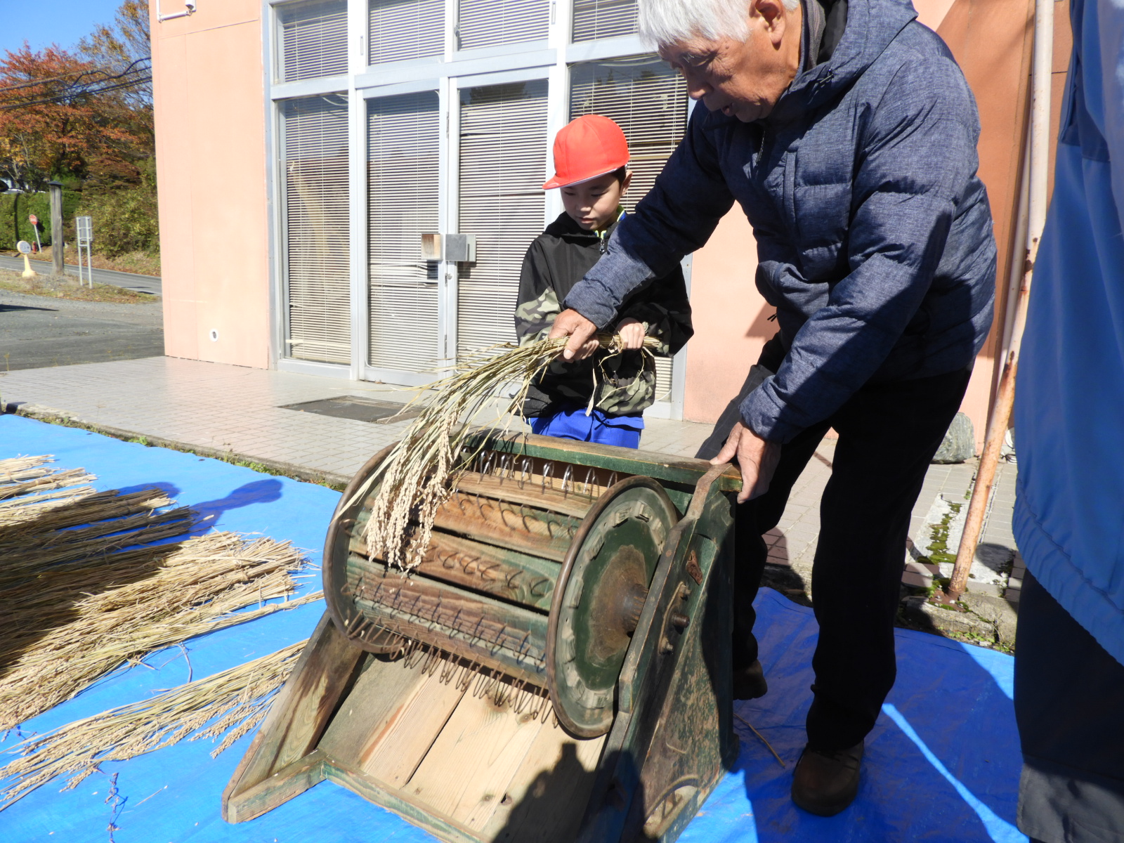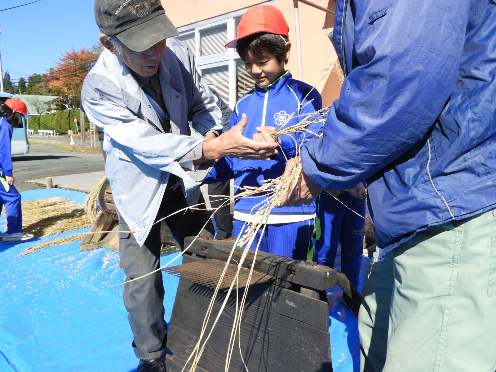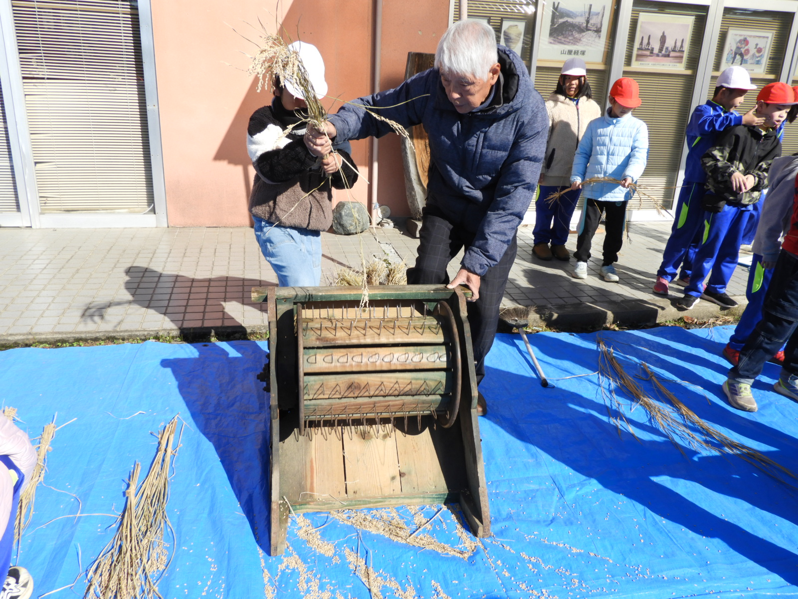赤沢郷土資料館(赤沢公民館)では、昔の様々な道具が展示されており、地域の方に丁寧に使い方を説明していただきながら、昔の人々のくらしの様子について考えることができました。これから学習する社会科の「かわる道具とくらし」のよい事前学習ができました。