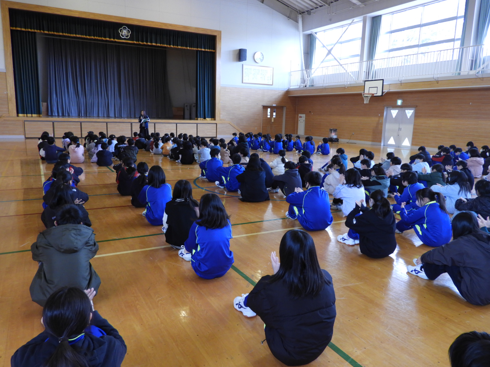 この取組の成果を、3月5日(木)の児童朝会の中で確認し合いました。たくさん集まった「友だちのよいところ」が全校に紹介され、みんなでみんなのよいところに賞賛の拍手をしました。