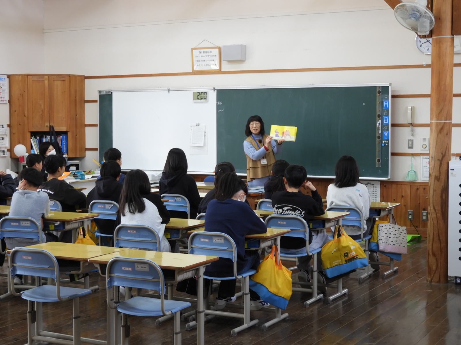 どの学級も本の世界にふれながら、ボランティアみなさんの読み聞かせを楽しく聞いていました。杜のくまさんの皆様、1年間ありがとうございました。4月からもまたよろしくお願いいたします。
