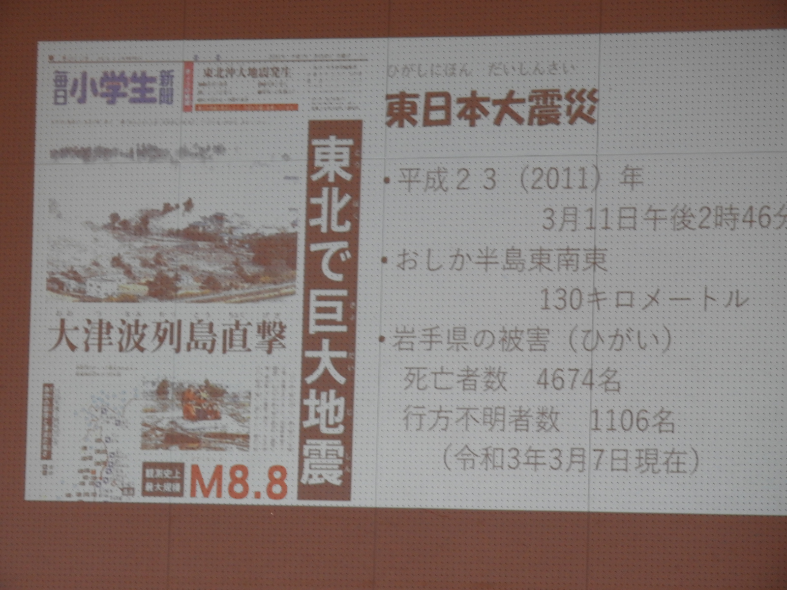 東日本大震災津波から15年。本校では、毎月11日を復興の日として、いわての復興教育副読本「いきる かかわる そなえる」等を使用して、災害や防災等について学習しています。